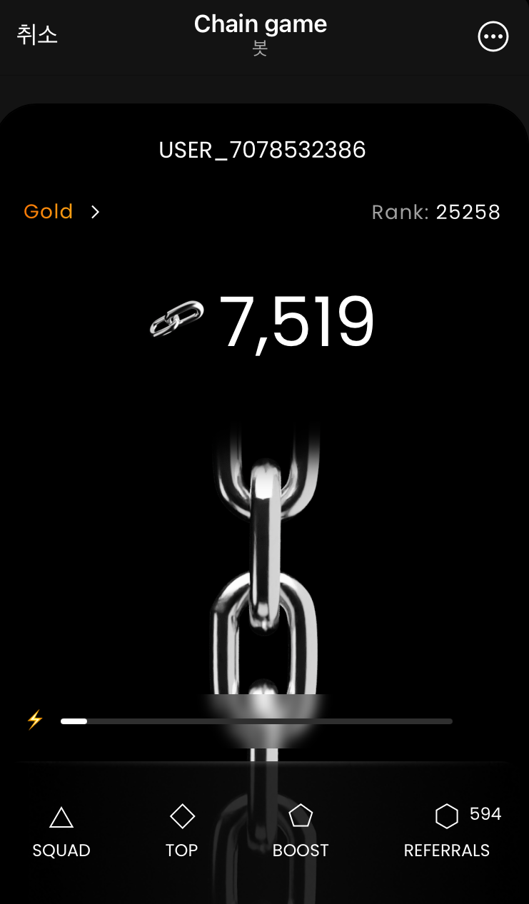 이 Chain game 은 바로 NOT코인 형식의 터치형 채굴 코인입니다..