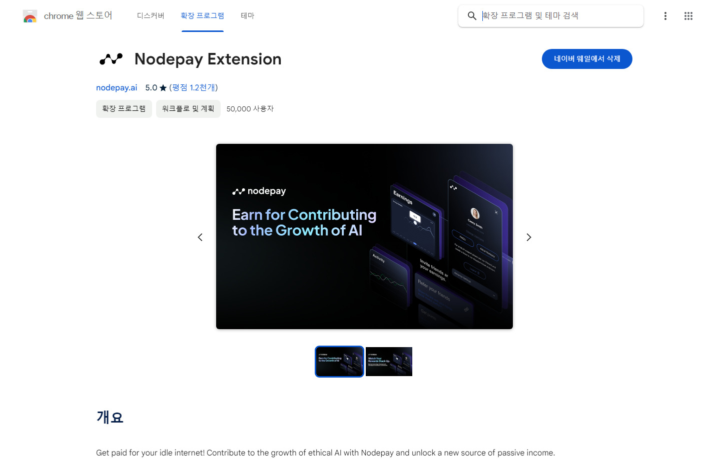 크롬 웹스토어에서 NODEPAY라고 검색하셔서 직접 설치하셔도 되고,