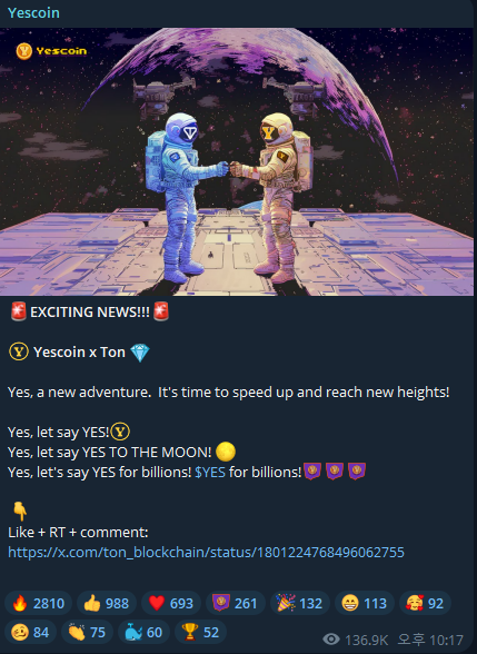 YES코인 공식 트위터 - https://twitter.com/Yescoin_Fam