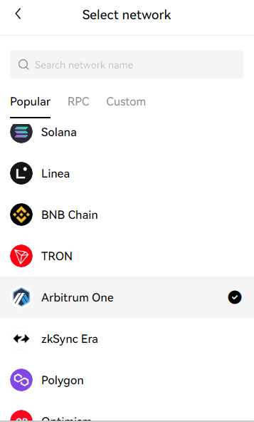 deposit network를 arbirtum이나 optimism으로 맞춰주시면