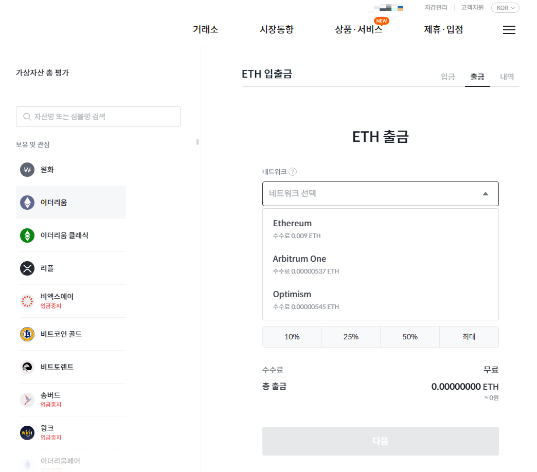 국내에는 이더리움 같은 경우에, 지원되는 네트워크가 많지 않으므로 이더리움 보다는