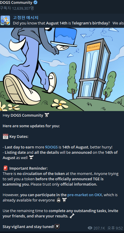 근데 오늘 공식 텔레그램방에
